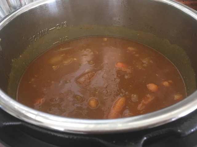 インスタントポットは水分が良い塩梅に蒸発しないので、水は少なめに・・