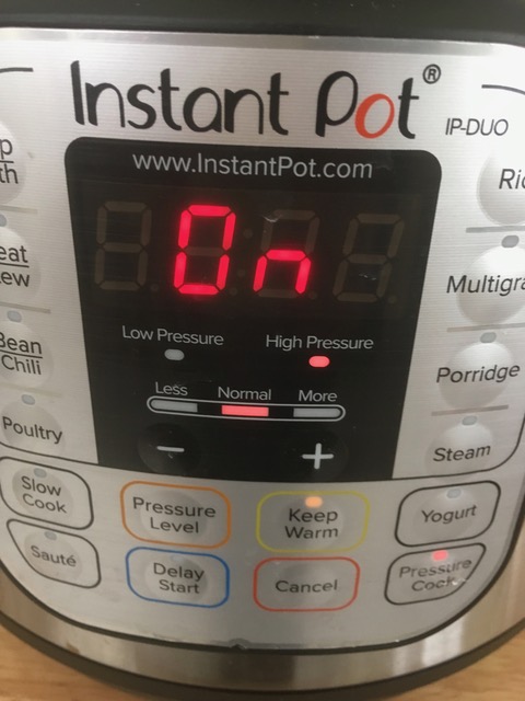 インスタントポットの設定を"Pressure Cook"(圧力調理)にして、時間を15分にセットし蓋を閉めます。