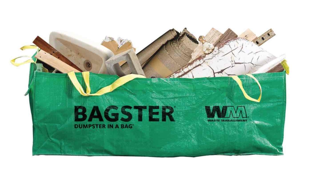 ホームセンターでダンプスター(Dumpster) 最大3,300lb=1496kg詰め込めるバッグを購入し、この廃品回収業者に引き取ってもらいました。